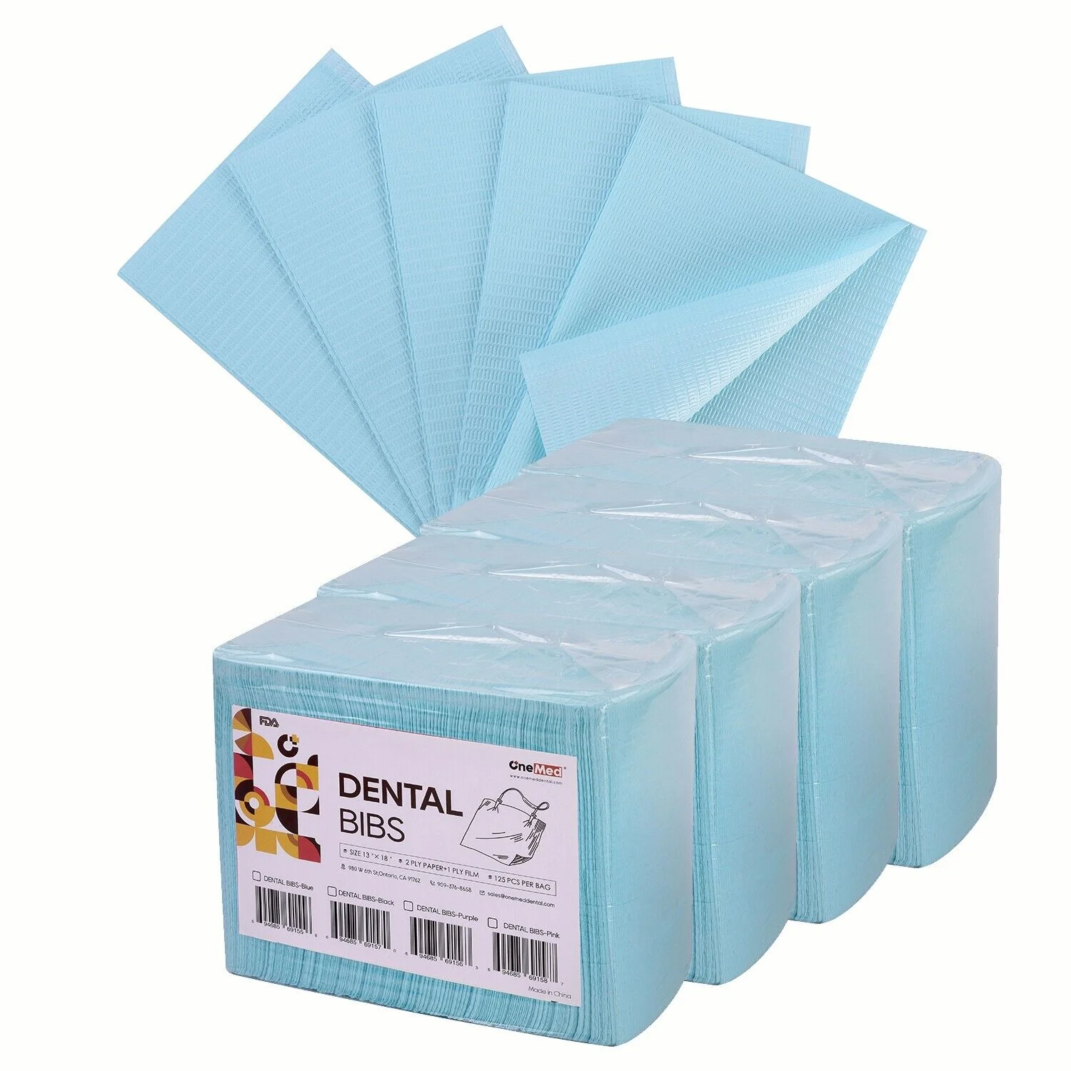 OneMed Dental Disposable Waterproof Dental Bibs, 3-Ply Dentist Bibs, Waterproof Tattoo Bibs,13”x18”, 125 pcs / bag