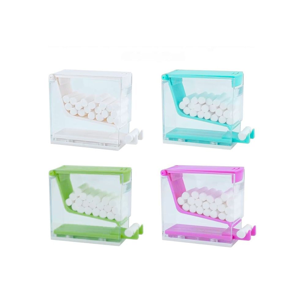 The cotton roll dispenser is suitable for the hygienic storage of cotton rolls. The hinged lid ensures that the cotton rolls are protected from dust or dirt. The dispenser is easy to fill and the dental cotton rolls are dispensed one at a time by pressing lightly on the lid.